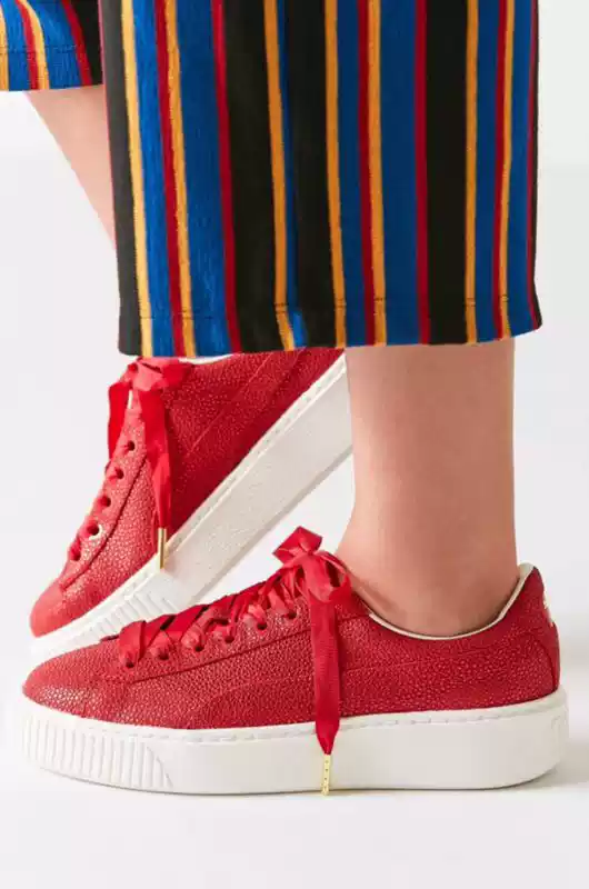 Ready stock puma shiny red sneakers - women's lace-up casual comfort shoes