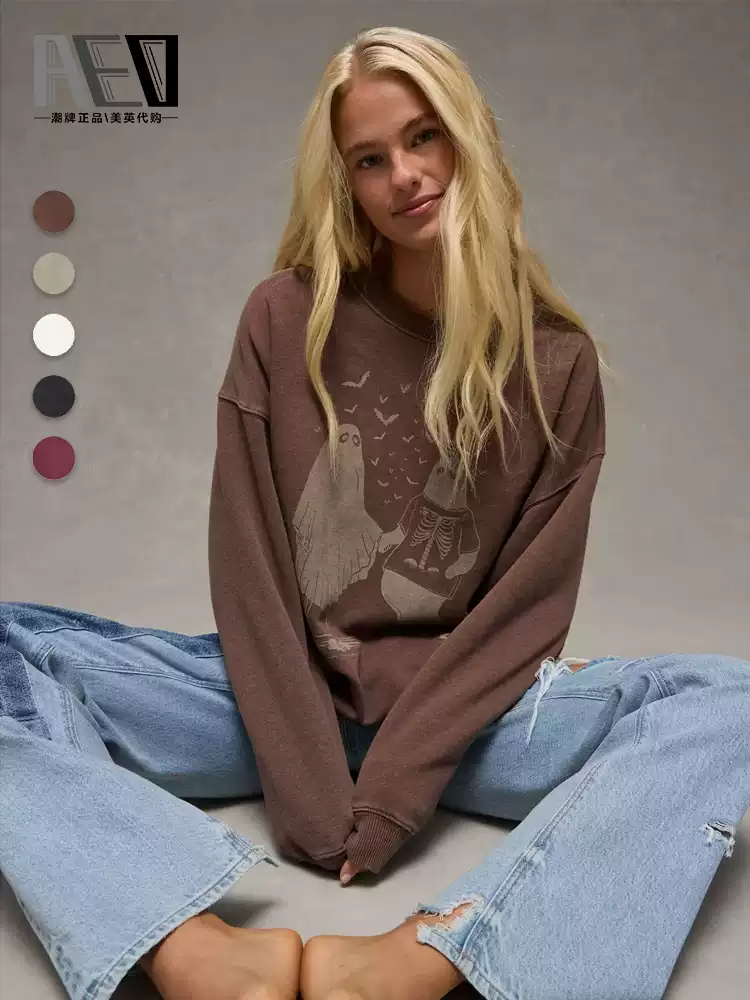 American eagle crewneck sweatshirt - women's casual activewear, 80% cotton, valentine's day print, versatile & stylish