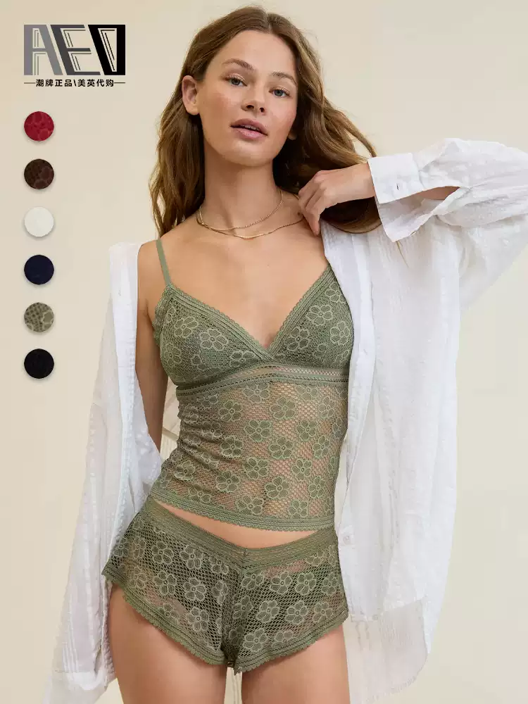 Aerie ariel cut outsexy bra vest style thin lace plaid breathable intimates removable coaster