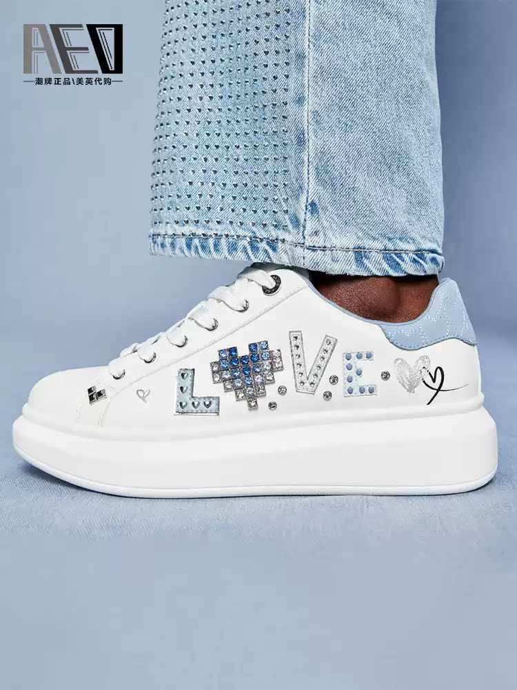 Aldo aldo bright diamond love pattern flatswhite shoes low anklecasual sneakers women tie backpure color round toe