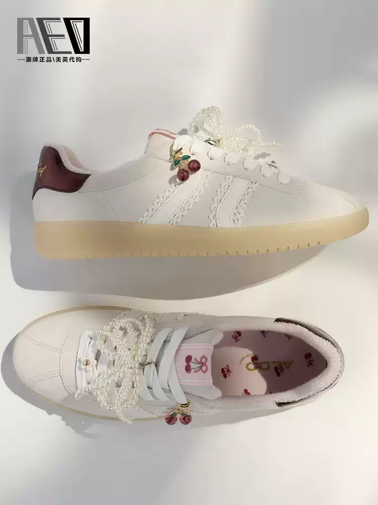 Aldo flat low-top casual sneakers white shoes athletic shoes women cherry pearl bow deer leather