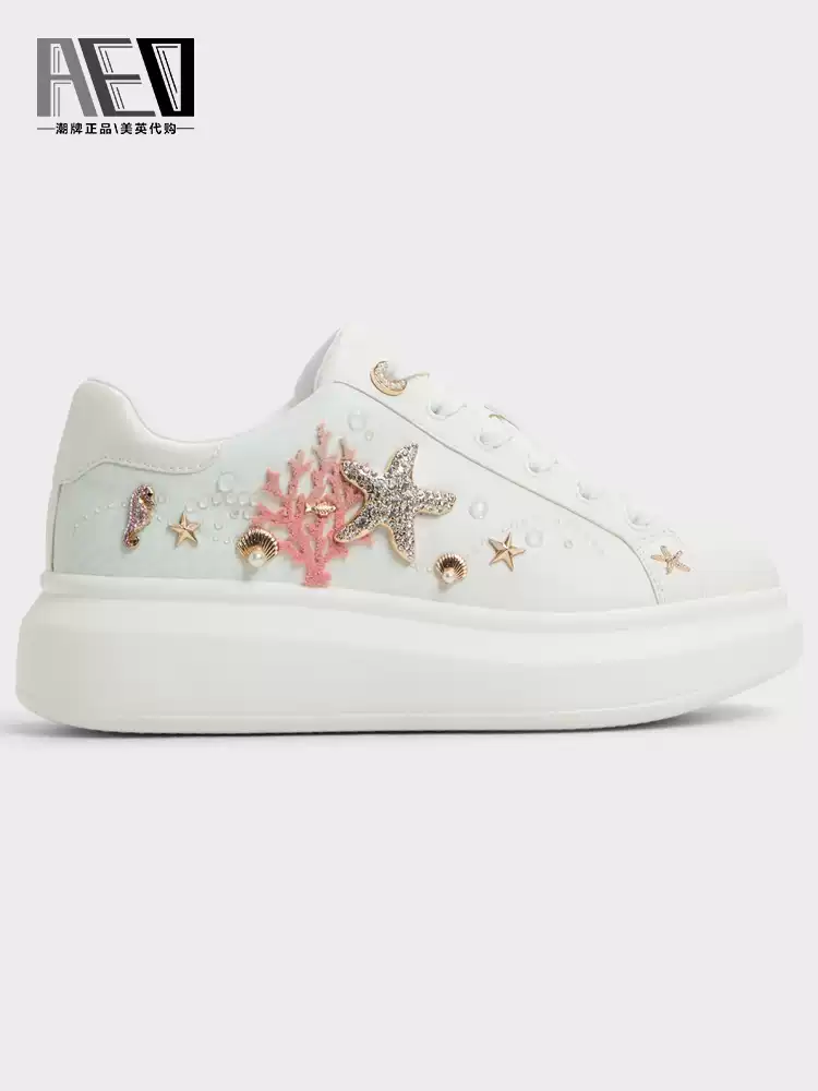 Aldo women's flat low-top casual white sneakers - new arrival with high platform, seashell and other decorative accents
